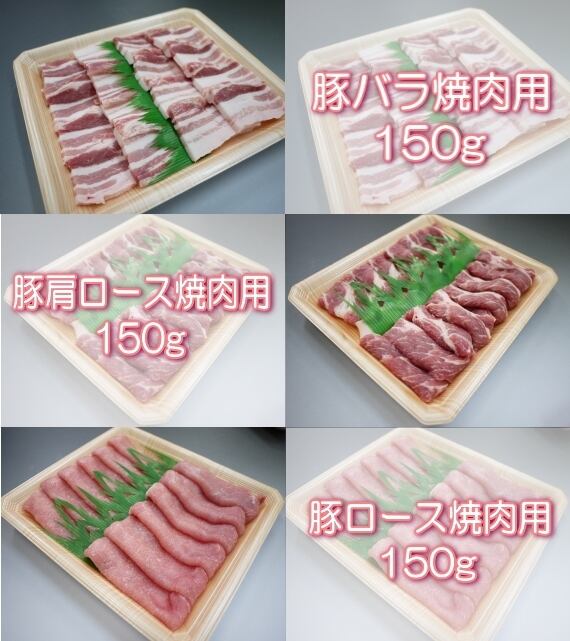 豚ロース(150g)、豚肩ロース(150g)、豚バラ(150g)【約3人前】